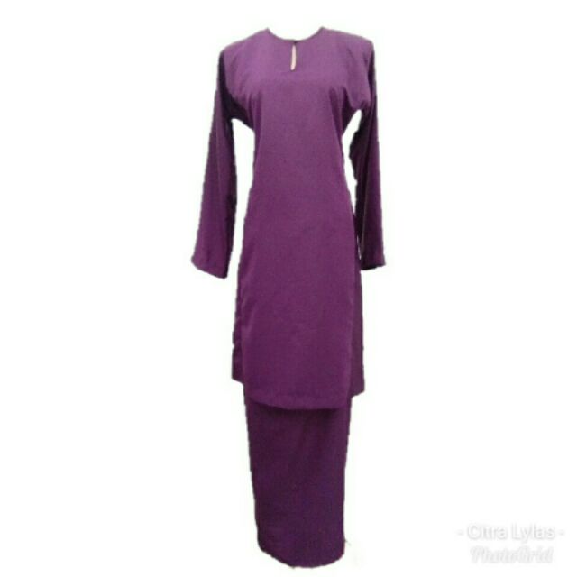 Baju Kurung Pahang Plain Lipat Batik Royal Purple Shopee Malaysia